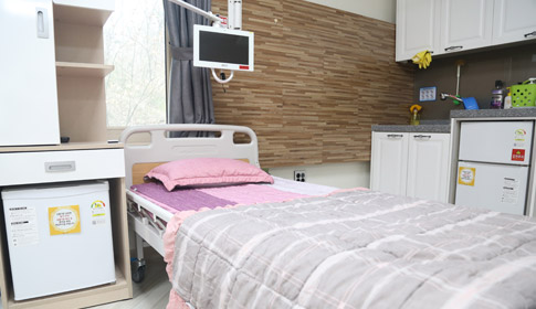 면역력 증강에 도움을 주는 충분한 수면과 심리적 안정을 취할 수 있게 은은한 간접 조명과 밝은 대리석의 실내는 내 집처럼 편안함을 드리기 위함입니다. 자연친화적인 병동에서 탁 트인 창을 통해 바람 햇살을 느낄 수 있고, 온돌병동은 온도와 습도 조절에 탁월해 호흡기 질환 예방에 도움을 드리고 있습니다. 개별 TV를 통해 사회적 네트워크를 유지하며 긴 병원 생활에 무료함을 달랠 수 있습니다.